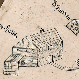 [Bild 07] Ausschnitt aus der Zeichnung Das Perghaus zu Ischel am Salzberg, samt der Schmiten., Maria Susanna Keßler/Laimer zugeschrieben. Um 1800.
